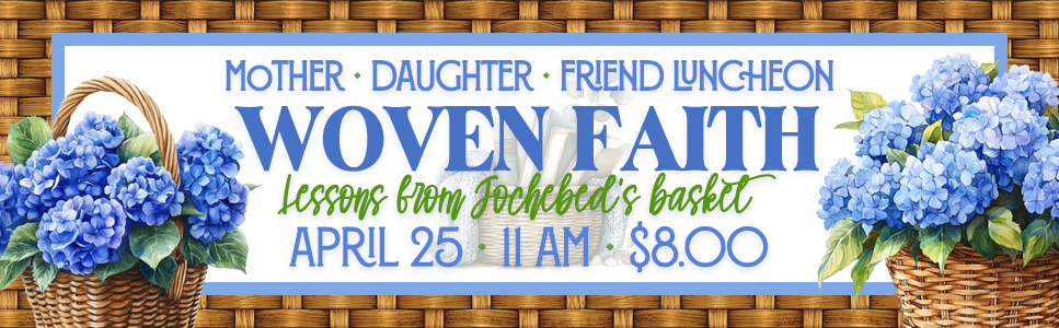 Join us Saturday, April 25, at 11:00 am in the Ministry Center for a Mother/Daughter/Friend luncheon. We will enjoy a great meal and fellowship together. We will also hear from Mrs. Joy Edmonds. The cost is $8.00 per person. Please fill out this form and click submit.