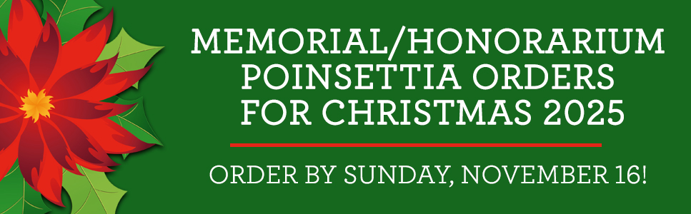We invite you to join in decorating the church with lovely poinsettias by purchasing them in memory or in honor of a loved one. The poinsettias will be placed in various locations throughout the church on Sunday, December 7. Please fill out this form and click submit.